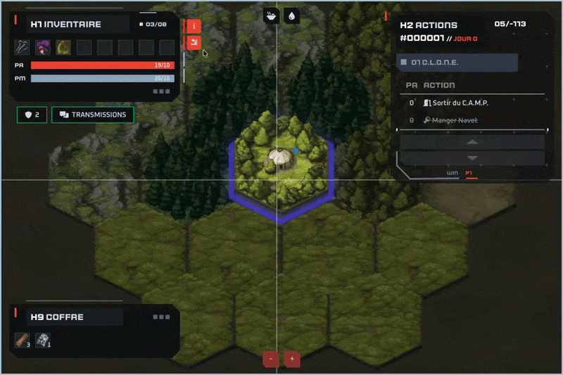 Dans l’interface in game, chaque journée est une suite de décisions concrètes. Tu te déplaces de case en case, tu dépenses des points d’action et de mouvement, et tu choisis ce qui mérite vraiment d’être fait aujourd’hui.